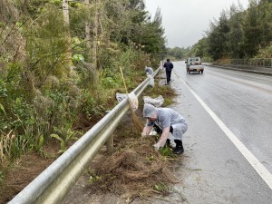 去った令和7年2月25日火曜日、第12回名護東海岸フラワーフェスティバルに向けて、地域の区長会の皆様、地域ボランティアの皆様、白石グループ職員の皆様のご協力のもと、清掃活動を行いました! あいにくのお天気でしたが、国道329号線二見トンネル付近~わんさか大浦パークまでの区間を2グループに別れて草刈り作業を行って頂き、すっきりきれいになりました。